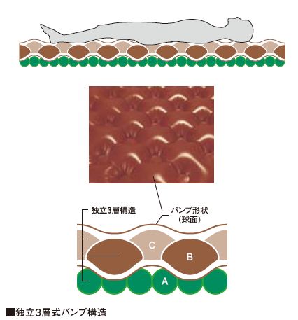 - ひざ下支持エアバッグにより、下肢拘縮の人でも安定感のある自動体位変換が可能です。(<ひざ上げタイプ>)